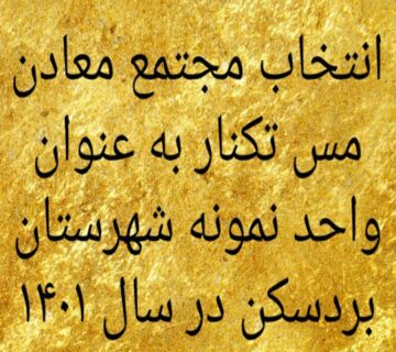 انتخاب شرکت مجتمع معادن مس تکنار به عنوان واحد نمونه شهرستان بردسکن در سال ۱۴۰۱ ... ادامه مطلب